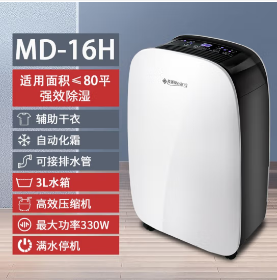 美菱(MeiLing) MD-16H除湿机客厅干燥卧室吸湿回南天大功率地下室除潮家用抽湿神器 (SKU:yzwhyp917022