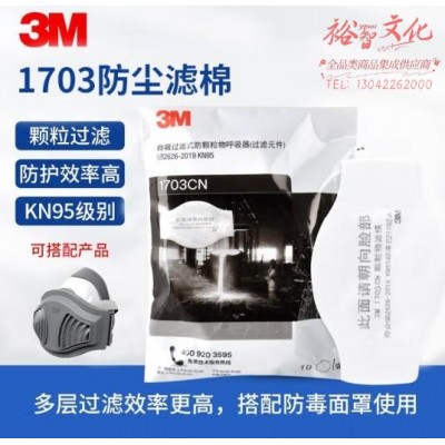 3M 1703CN滤棉 10片/袋 KN95颗粒物防粉尘过滤棉1211面具替换滤棉 (SKU:yzwhyp917054