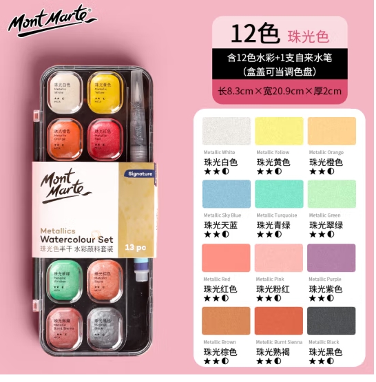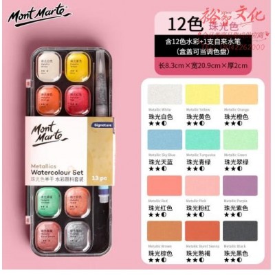 蒙玛特(Mont Marte)水彩颜料 固体水彩颜料半干水彩颜料学生水彩画颜料美术画画 12珠光色套装PMHS0117CN (SKU:yzwhyp917073