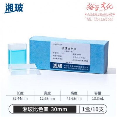 首页 > 仪器仪表 > 分析仪器辅助装置 > 比克曼生物 湘玻 玻璃微量比色皿紫外可见分光光度计熔融荧光比色槽高透光 玻璃比色皿30mm 10只/盒 (SKU:yzwhyp917081