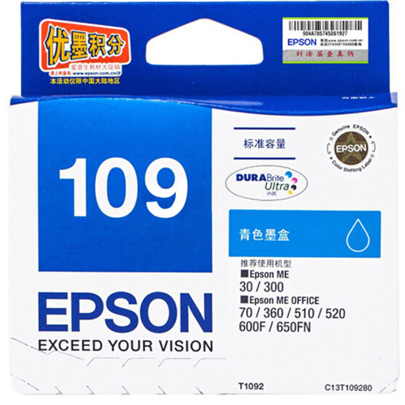 爱普生 EPSON 墨盒 T1092 (青色)(SKU:yzwhyp917155