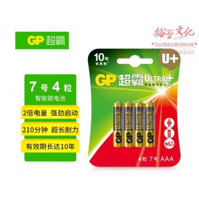 超霸(GP)7号电池4粒七号碱性干电池适用于儿童遥控车玩具/剃须刀/体重秤门铃/7号/AAA/R03(SKU:yzwhyp917501