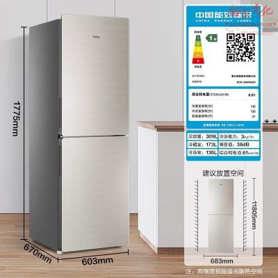 海尔 双开门309升变频静音节能风冷无霜大冷冻室 BCD-309WMCO(SKU:yzwhyp917560