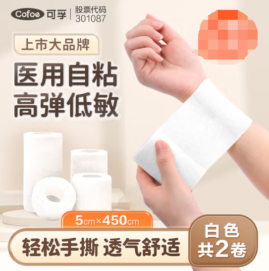 可孚 粘弹力绷带5cmX450cm【白色2卷】 弹性绑带关节手指固定运动绷带护指包扎护指护腕护踝护膝绑腿踝 (SKU:yzwhyp917580
