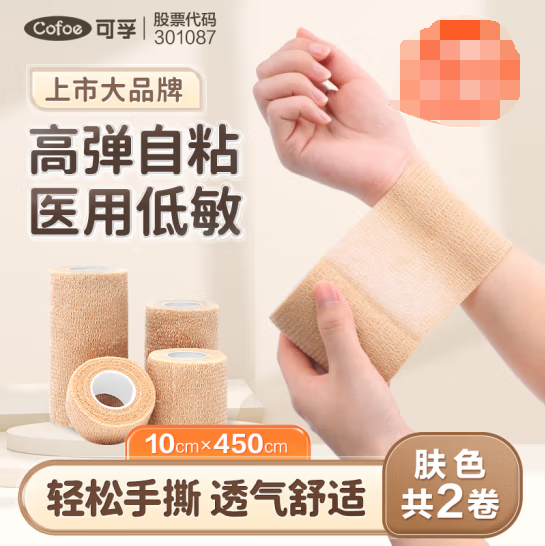 可孚 粘弹力绷带10cmX450cm【肤色2卷】 弹性绑带关节手指固定运动绷带护指包扎护指护腕护踝护膝绑腿踝 (SKU:yzwhyp917583