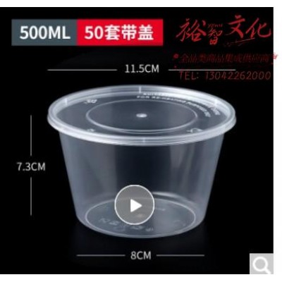 首页 > 用具 > 餐具 > 特美居 一次性饭盒圆形透明塑料快餐盒50只装500ml带盖加厚 (SKU:yzwhyp917698