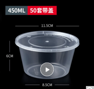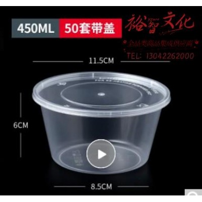 首页 > 用具 > 餐具 > 特美居 一次性饭盒圆形透明塑料快餐盒50只装450ml带盖加厚 (SKU:yzwhyp917699