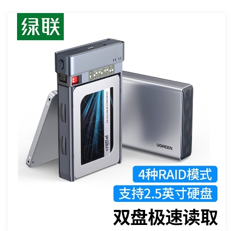 绿联 磁盘阵列硬盘柜双盘位硬盘盒硬盘笼(带RAID存储)硬盘仓 适用2.5英寸SATA串口机械固态硬盘 80857 (SKU:yzwhyp917731