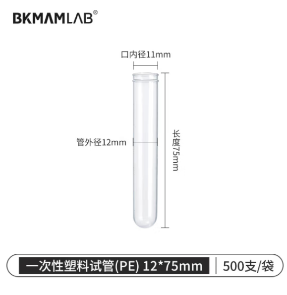 比克曼生物(BKMAM)一次性塑料试管PE材质加厚采样实验室 【非无菌】12*75mm 500支/盒 (SKU:yzwhyp917751