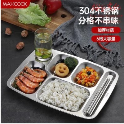 美厨(MAXCOOK)304不锈钢餐盘饭盒分格 快餐盘学生餐盒 六格餐盘 (SKU:yzwhyp917760