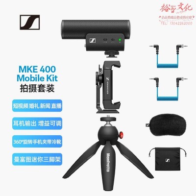 森海塞尔 MKE400 Mobile-Kit 直播vlog单反相机手机支架套装收音采访话筒枪式麦克风SKU:yzwhyp917837