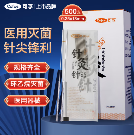可孚 针灸针0.25x13mm(500支/盒) 一次性使用无菌针中医无套管非独立装 (SKU:yzwhyp917850