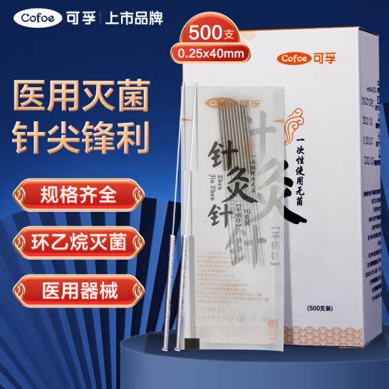 可孚 针灸针500支0.25x40mm(针长一寸半) 一次性使用无菌针中医带套管非独立装 (SKU:yzwhyp917853