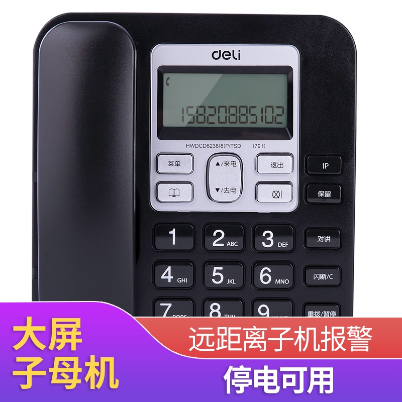 首页 > 通信设备 > 普通电话机(不包含移动电话) > 得力(deli)电话机座机 固定电话 办公家用 子母机 超距离子机报警 791黑(SKU:yzwhyp917962