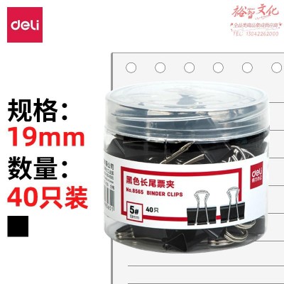 得力(deli)40只19mm黑色长尾夹票夹 金属燕尾夹票据夹子 小号8565(5盒装)(SKU:yzwhyp918169