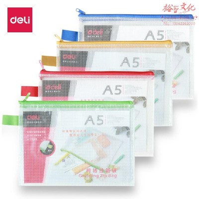 得力(deli)12只 A5透明文件袋网格拉链袋 防水资料袋 5591颜色随机(SKU:yzwhyp918198