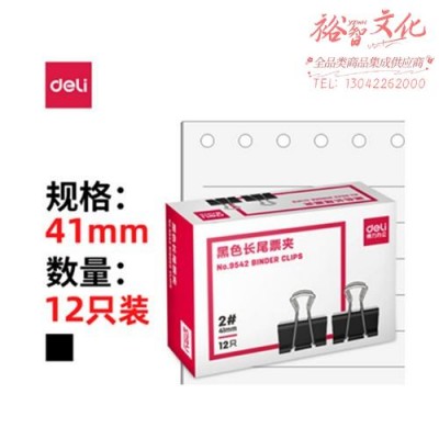 得力(deli)41mm金属黑色长尾夹 12只/盒 9542(SKU:yzwhyp918207
