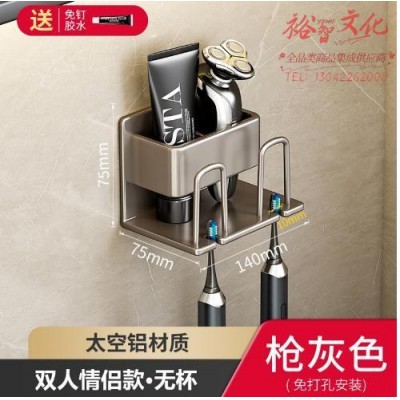 枪灰 牙刷置物 架 免打孔漱口杯牙杯壁挂式收纳架 两人铝牙刷架(免打孔) (SKU:yzwhyp918468