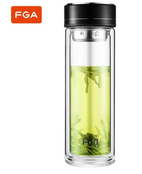 富光 泡茶杯双层隔热 商务高档便携家用喝水杯子 300ML 黑色(SKU:yzwhyp918526