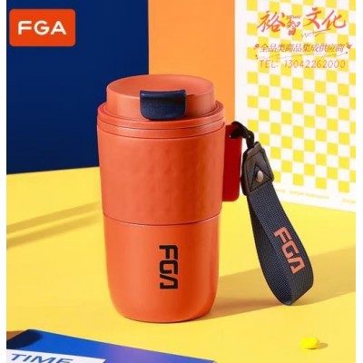 富光 咖啡杯 不锈钢大容量保温杯带盖杯子 橙色 420ML(SKU:yzwhyp918530