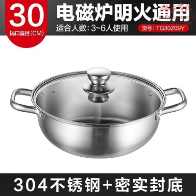 美的(Midea)喆物火锅304不锈钢鸳鸯锅30CM火锅盆汤锅加厚锅具电磁炉通用TG30Z09Y(SKU:yzwhyp918637