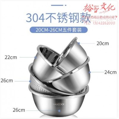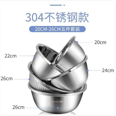 美厨(maxcook)304不锈钢盆筛五件套 加厚大号洗菜盆 米筛味斗套装 MCWA550 (SKU:yzwhyp918886