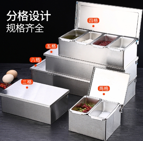益洁 不锈钢调料盒翻盖调味盒带盖家用厨房收纳饭店冰粉配料盒配菜商用 特厚小4格201内格【单格 450ML】 (SKU:yzwhyp918930