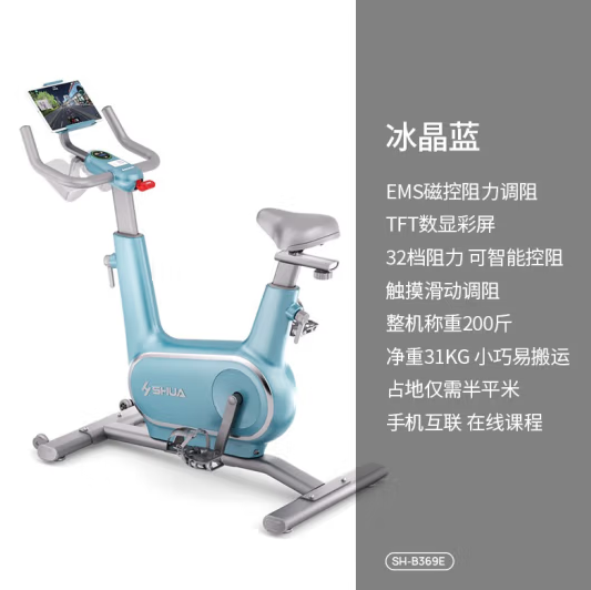 舒华(SHUA)精灵动感单车家用智能调阻运动健身器材室内单车脚踏自行车SH-B369 Pro版冰晶蓝-触摸调阻-游戏骑行 (SKU:yzwhyp918975