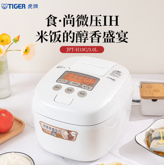 虎牌(Tiger)JPT-H10C电饭煲 Pro 智能压力 涂层3L电饭煲 2-6人 丝光白(SKU:yzwhyp919181