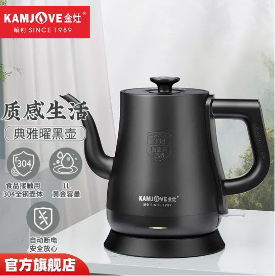 金灶(KAMJOVE) T-93自动断电电热水壶 电水壶烧水壶家用电热泡茶专用茶具热水壶1L容量 曜石黑(SKU:yzwhyp919192