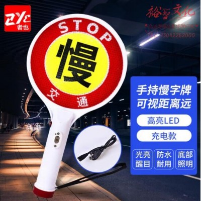 者也(ZYE)充电款慢字警示牌 手持交通慢字牌反光LED灯夜间执勤指挥灯道路示意发光棒(SKU:yzwhyp919221