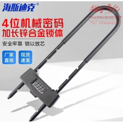 海斯迪克 HK-831 黑色U型门锁 店铺玻璃门密码锁 双开机械粱加长4位密码挂锁 (SKU:yzwhyp919338