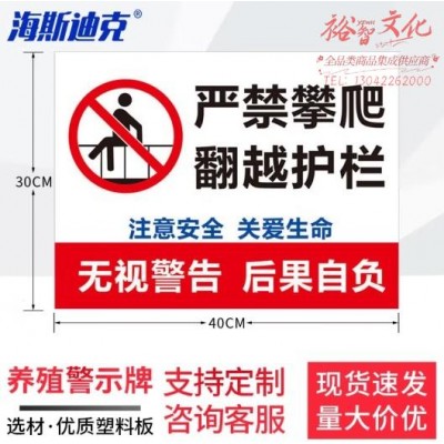 海斯迪克 养殖警示牌安全标识牌 1块 严禁攀爬 翻越护栏 30*40CM塑料板 HKL-300 (SKU:yzwhyp919351