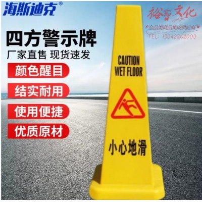 海斯迪克 gnjz-1056 塑料路锥方锥 小心地滑 四方告示牌 雪糕筒路障警示柱交通设施 (SKU:yzwhyp919357