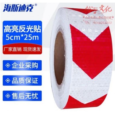 海斯迪克 HK-790 高反光贴 道路地贴警示反光贴 反光胶带警戒线 白底红箭头5cm*25m (SKU:yzwhyp919377