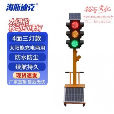 海斯迪克 可移动太阳能交通信号灯 临时信号灯 300mm升降款4面三灯 (圆灯)120W高配款 HKQL-17 (SKU:yzwhyp919386