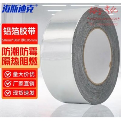 海斯迪克 加厚铝箔胶带 耐高温导电屏蔽 风管阻燃抗老化 50mm*50m 厚0.05mm HKHE-010 (SKU:yzwhyp919402