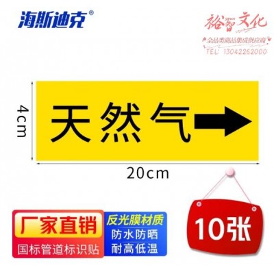 海斯迪克 国标反光膜管道标识贴(天然气10张 4×20cm)消防化工流向介质箭头标签贴纸 gnjz-1320 (SKU:yzwhyp919411