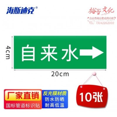 海斯迪克 国标反光膜管道标识贴(自来水10张 4*20CM)消防化工流向介质箭头标签贴纸 gnjz-1320 (SKU:yzwhyp919412