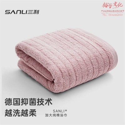 三利 抗菌浴巾纯棉A类柔软吸水洗澡巾裹身大毛巾大浴巾70*140 粉色 JS328(SKU:yzwhyp919546