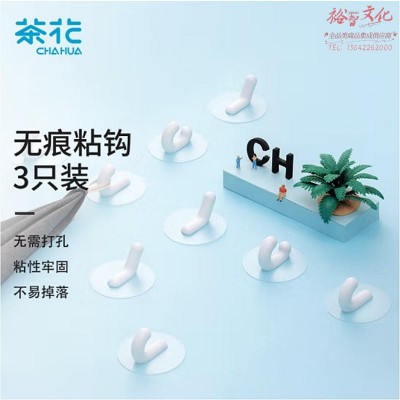 茶花 挂钩无痕粘钩免打孔免钉贴强力承重挂钩贴门后挂衣架 3个装 121012(SKU:yzwhyp919556