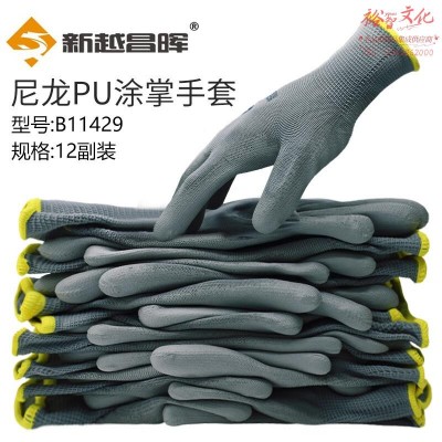 新越昌晖劳保手套 PU尼龙手套耐磨防滑涂掌浸胶挂胶手套防油线手套透气工作防护手套12副B11429(SKU:yzwhyp919561