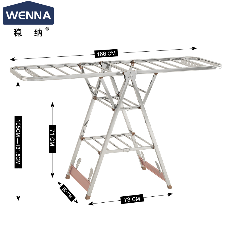 稳纳 落地阳台晾衣杆折叠 不锈钢衣架杆6505 1.66米加长SKU:yzwhyp919655