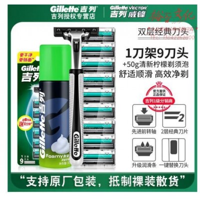 吉列威锋男士老式手动刮胡刀非锋速两层剃须刀旋转刀片 1刀架9刀头 50g须泡【剃护组合 限量】SKU:yzwhyp919660