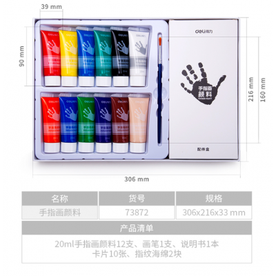 首页 > 办公用品 > 颜料 > 12色软管装可水洗手指画颜料