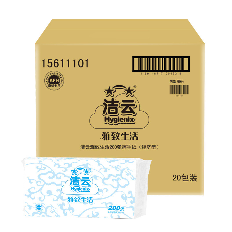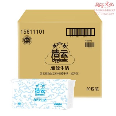 洁云 15611101 雅致生活200张单层三折擦手纸(经济型) 20包/箱(SKU:yzwhyp919750