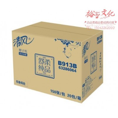 清风 B913B 舒柔纯品双层擦手纸 150张/包 20包/箱(SKU:yzwhyp919794