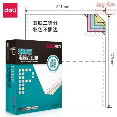 得力 珊瑚海打印纸 五联二等分针式打印纸 不撕边 彩色(白红蓝绿黄)1000页/箱241-5-1/2C (SKU:yzwhyp919864