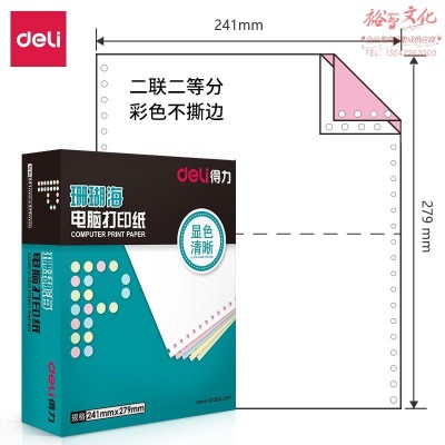 首页 > 纸及纸质品 > 纸及纸板(不包含复印纸) > 得力 珊瑚海打印纸 二联二等分针式打印纸 不撕边 彩色(白红) 1000页241-2-1/2C (SKU:yzwhyp919865