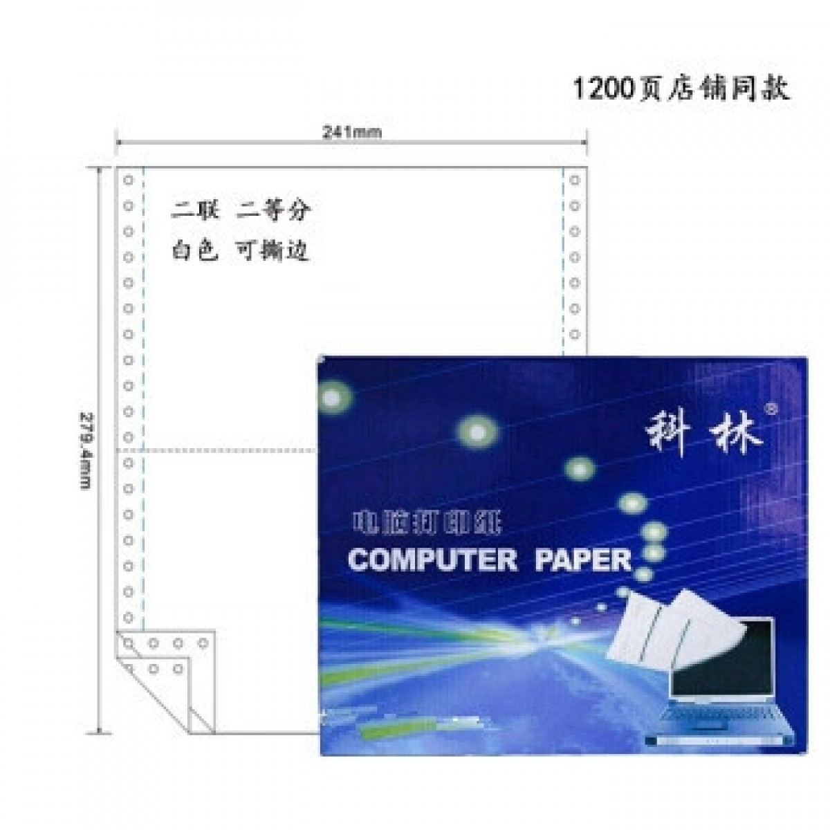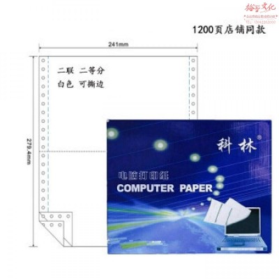 科林电脑打印纸241-2联两层二等分打印纸1200页全白可撕边 BG.309(SKU:yzwhyp919867